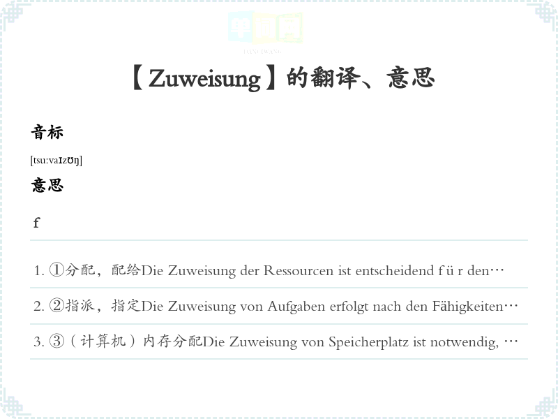 【Zuweisung】是什么意思、字义解释