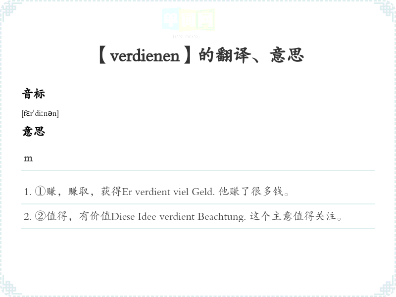 【verdienen】是什么意思、字义解释