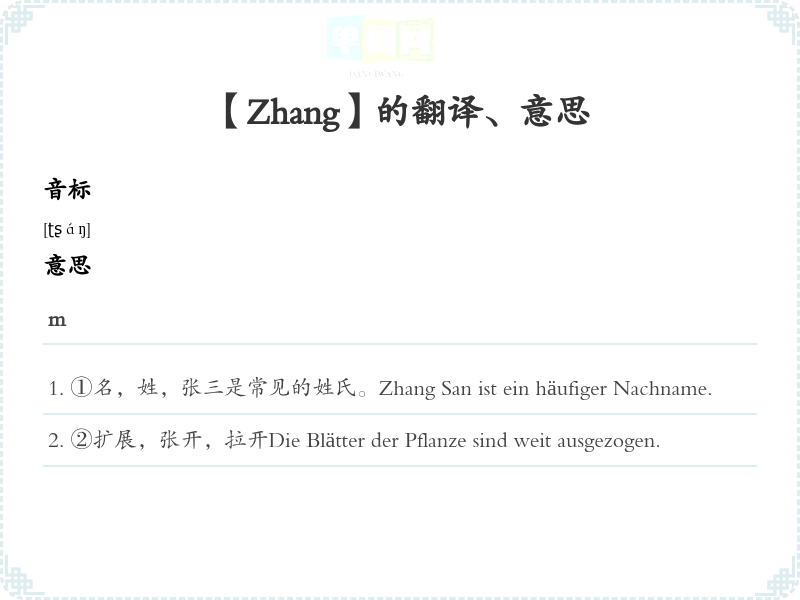①名,姓,张三是常见的姓氏。Zhang San ist ein häufiger Nachname.