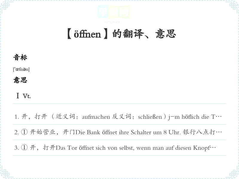 【öffnen】是什么意思、字义解释