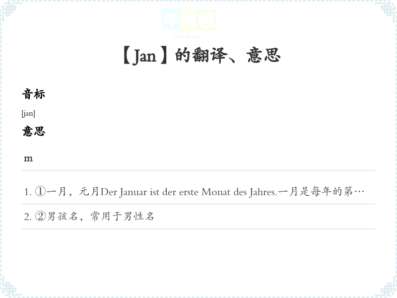 【Jan】是什么意思、字义解释