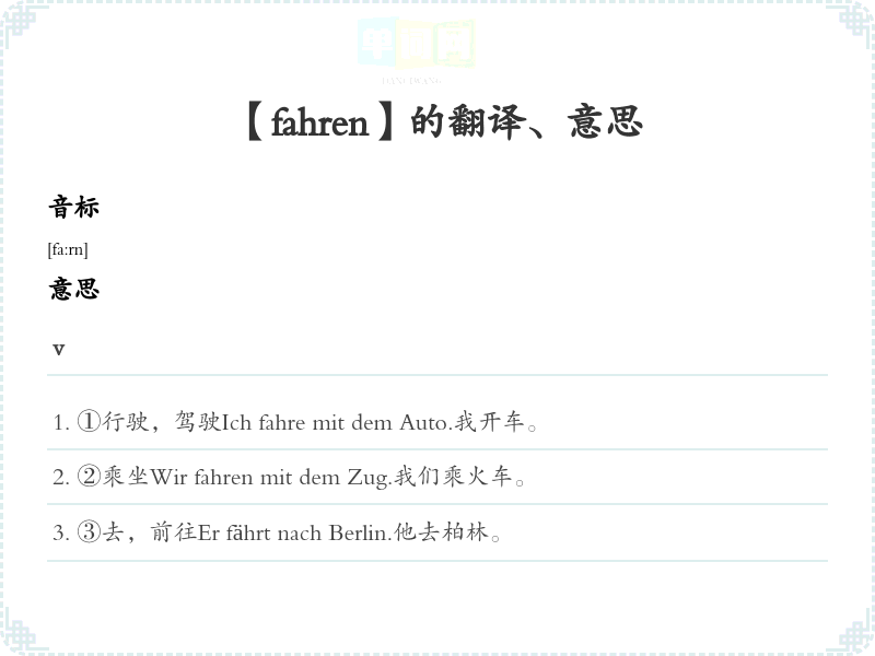 【fahren】是什么意思、字义解释