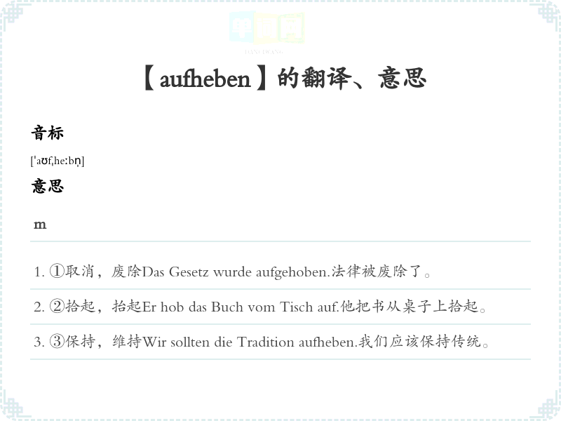 【aufheben】是什么意思、字义解释