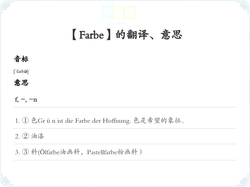 ① 色Grün ist die Farbe der Hoffnung. 色是希望的象征。