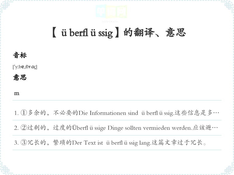 ③冗长的,繁琐的Der Text ist überflüssig lang.这篇文章过于冗长。