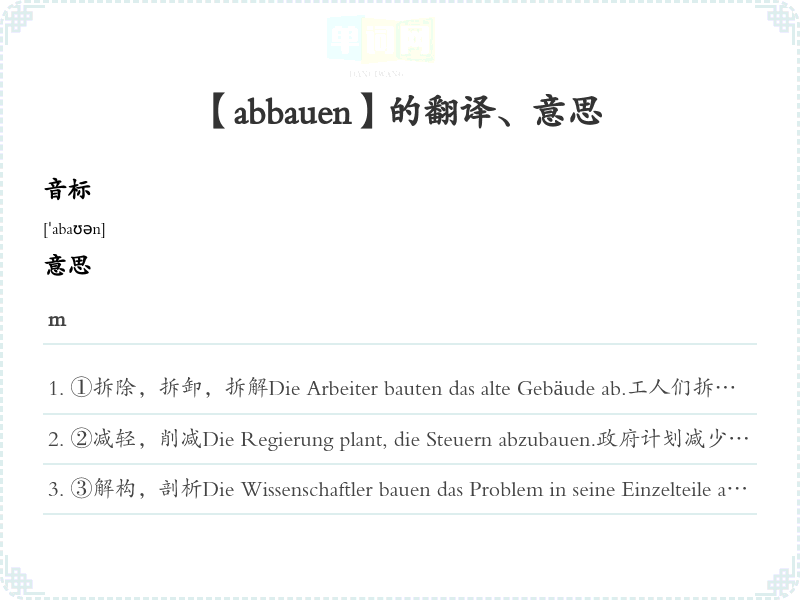 【abbauen】是什么意思、字义解释