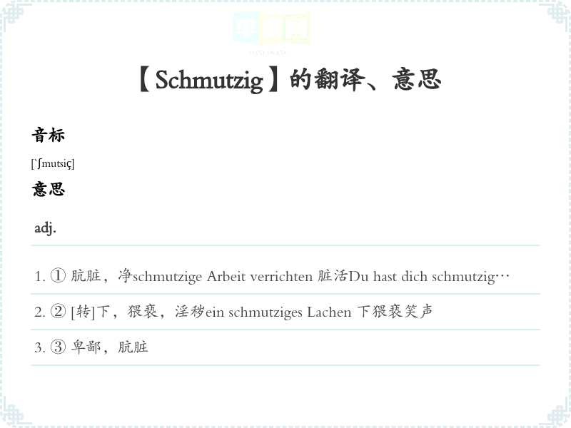 【Schmutzig】是什么意思、字义解释