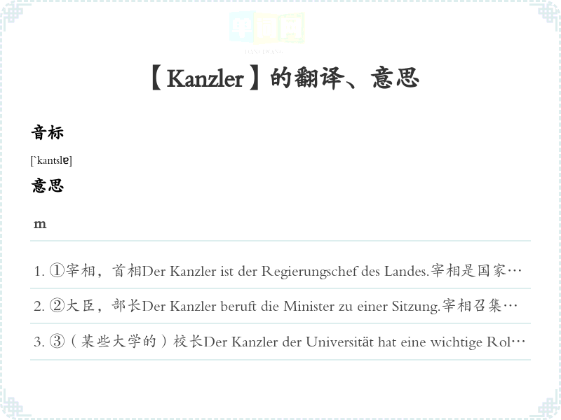 【Kanzler】是什么意思、字义解释
