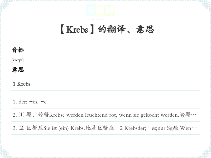 【Krebs】是什么意思、字义解释