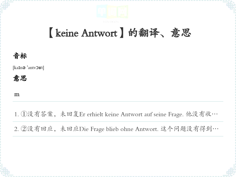 【keine Antwort】是什么意思、字义解释