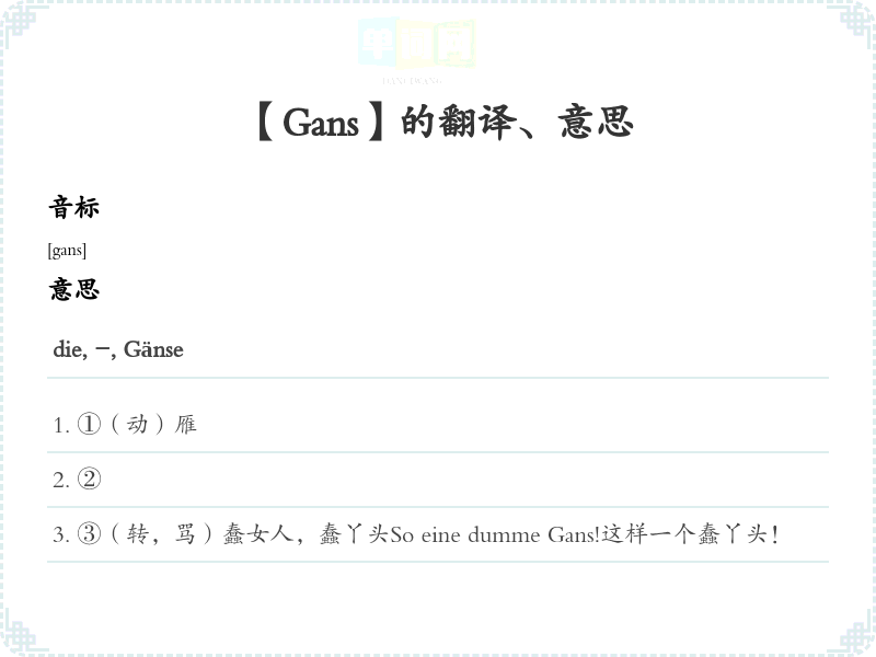 ③(转,骂)蠢女人,蠢丫头So eine dumme Gans!这样一个蠢丫头!