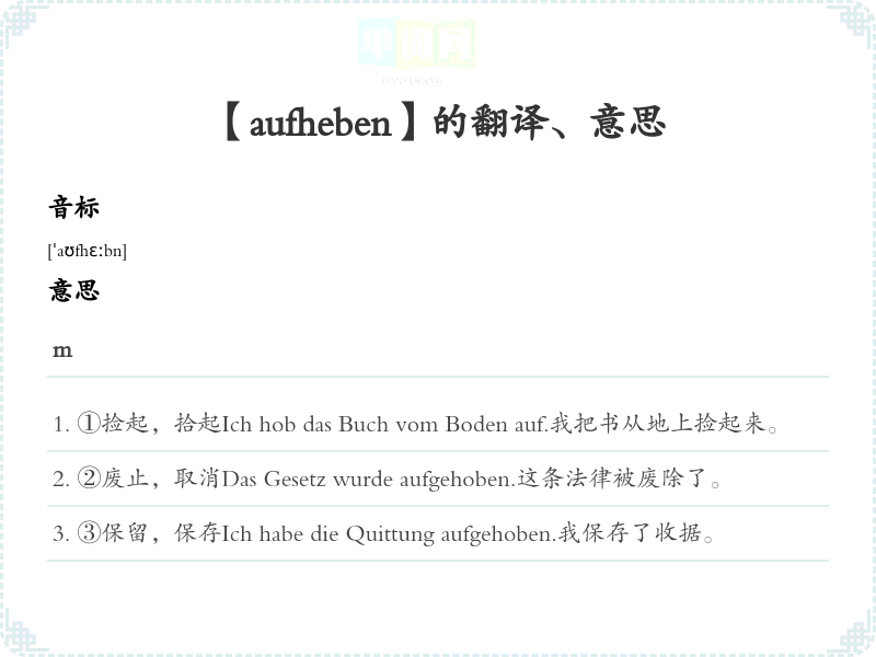 【aufheben】是什么意思、字义解释