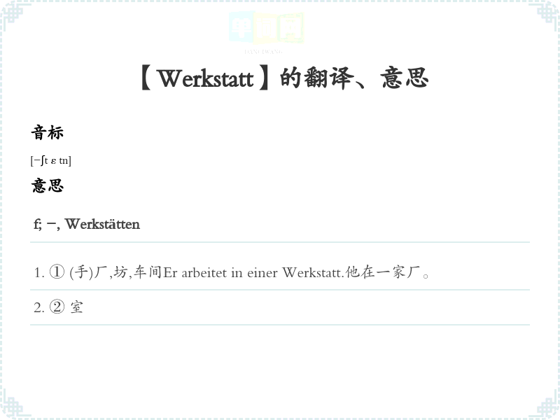 【Werkstatt】是什么意思、字义解释