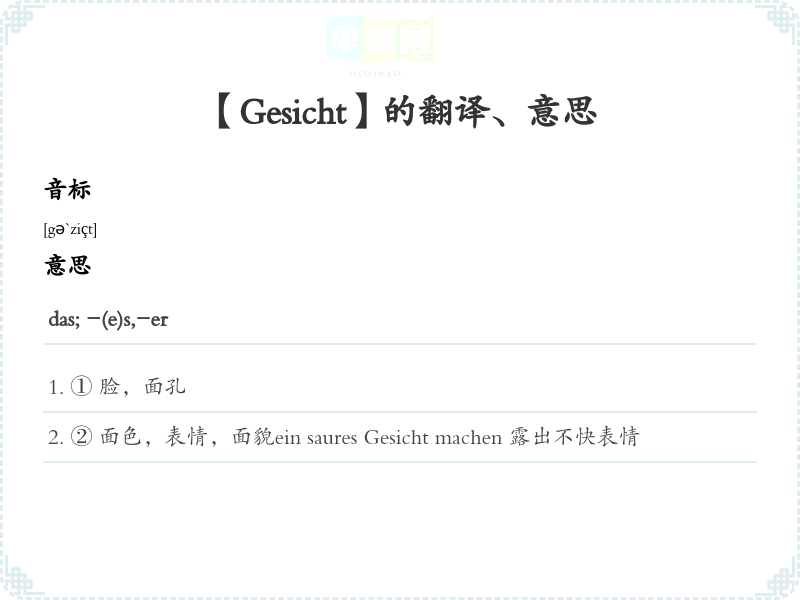 【Gesicht】是什么意思、字义解释