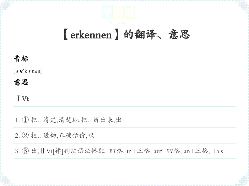 ③ 出,ⅡVi[律]判决语法搭配+四格, in+三格, auf+四格, an+三格, +als