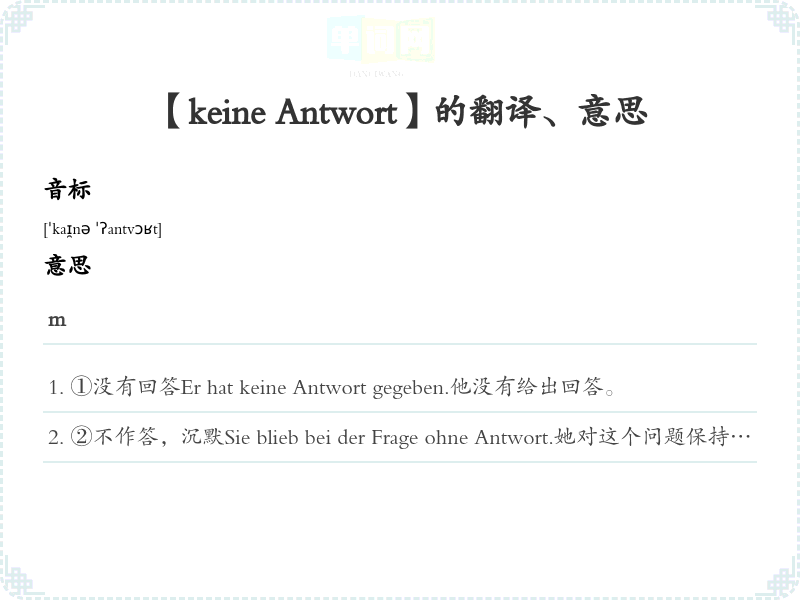 【keine Antwort】是什么意思、字义解释