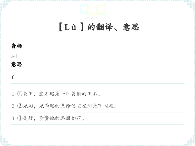- 璐是一种稀有的玉石。