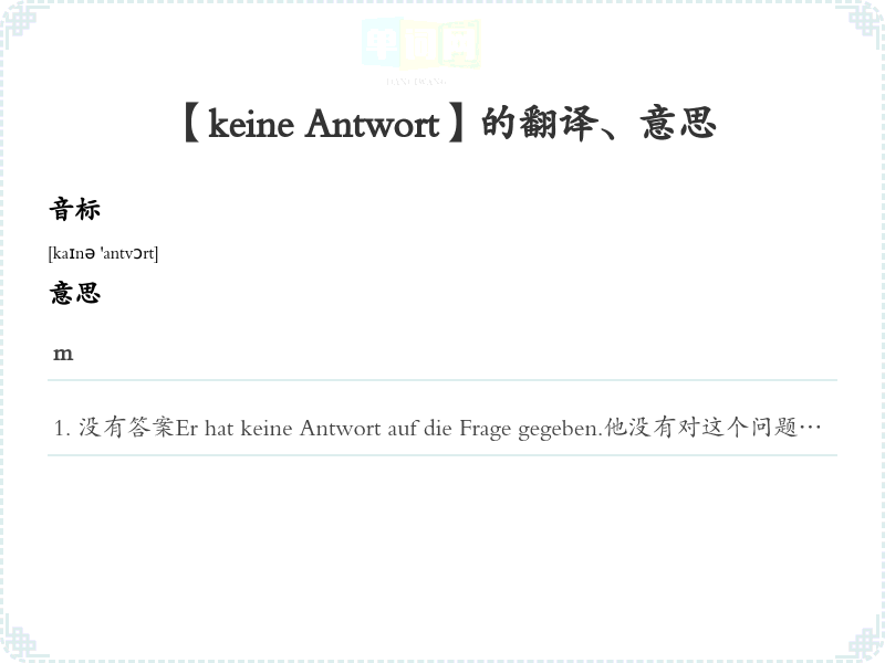 【keine Antwort】是什么意思、字义解释