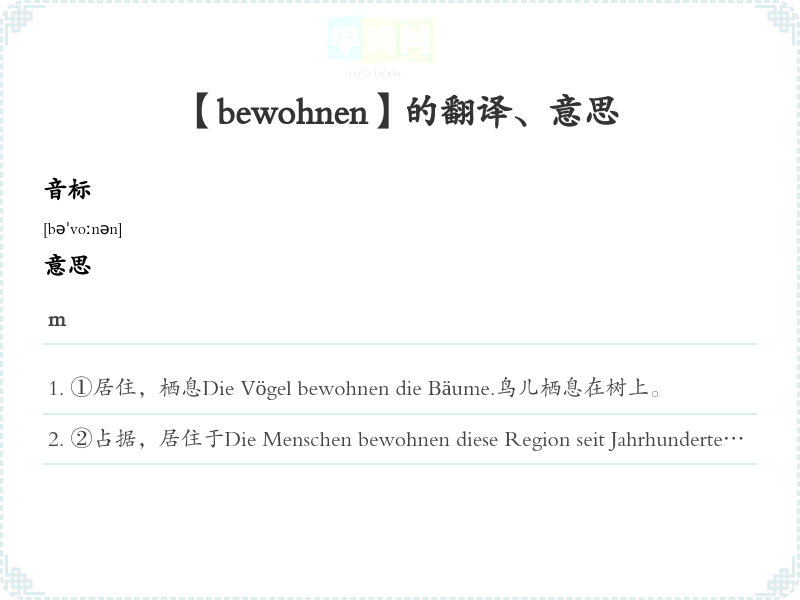 【bewohnen】是什么意思、字义解释