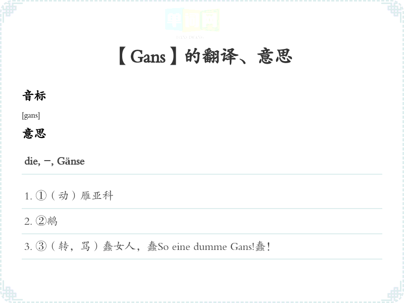 【Gans】是什么意思、字义解释