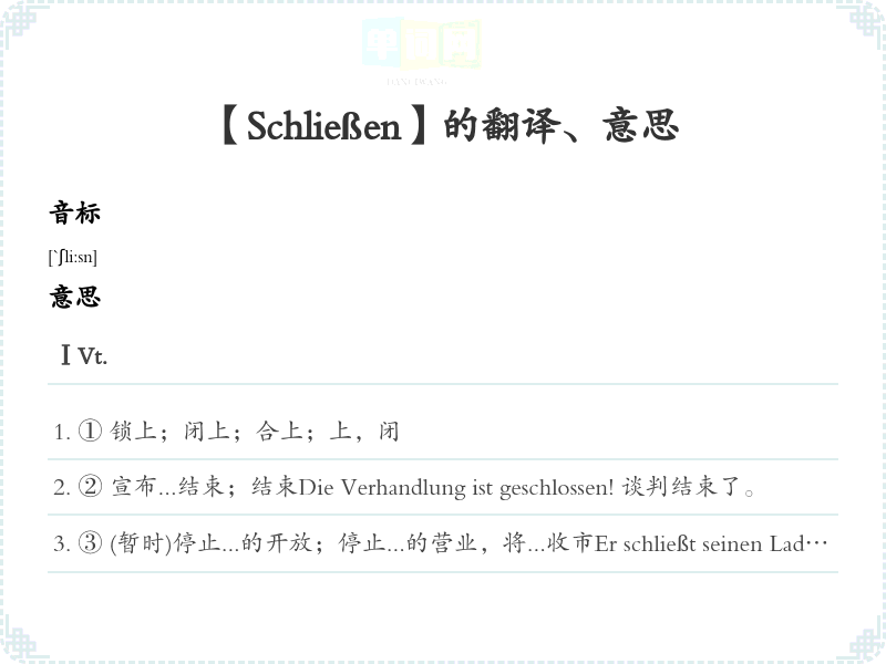 【Schließen】是什么意思、字义解释