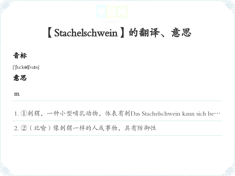 【Stachelschwein】是什么意思、字义解释
