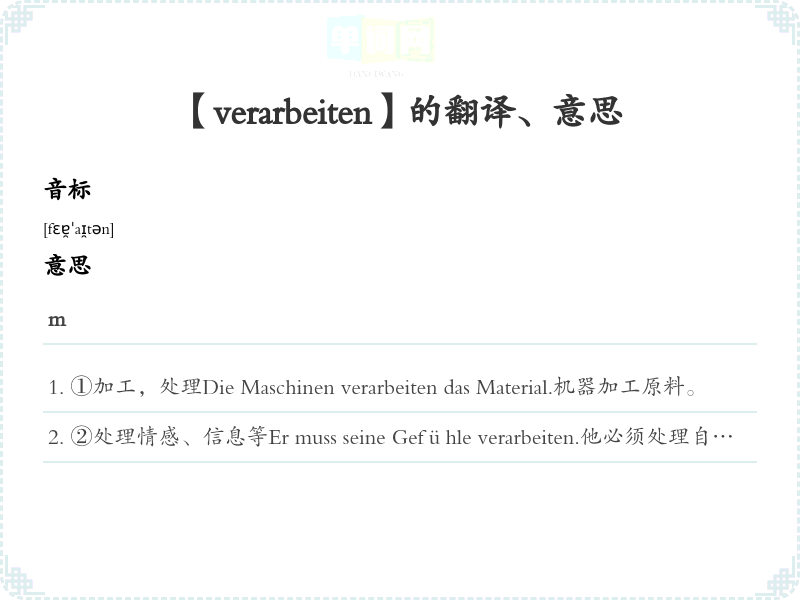 【verarbeiten】是什么意思、字义解释