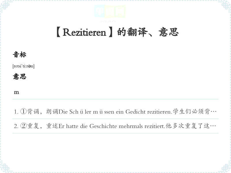 【Rezitieren】是什么意思、字义解释