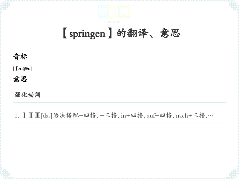 1.hüpfen蹦,跳跃,蹦蹦跳跳