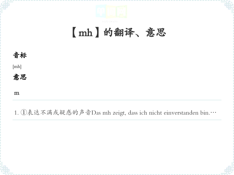 ①表达不满或疑惑的声音Das mh zeigt, dass ich nicht einverstanden bin.这个呣表示我不同意。