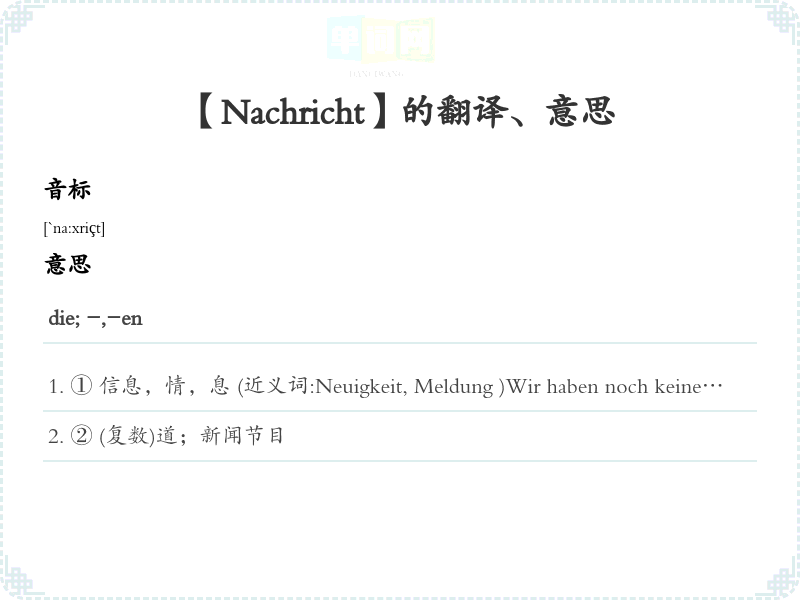 【Nachricht】是什么意思、字义解释