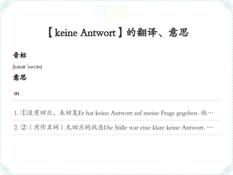 【keine Antwort】是什么意思、字义解释