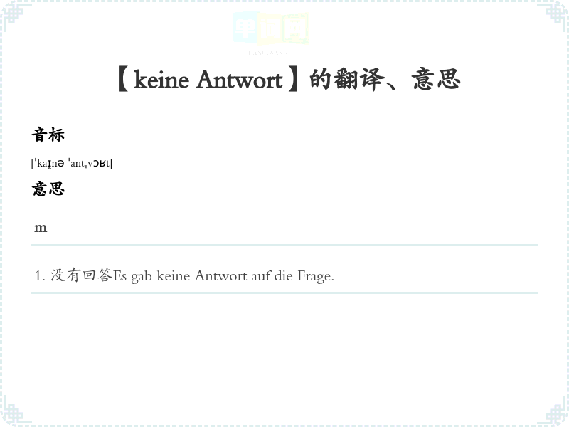 【keine Antwort】是什么意思、字义解释