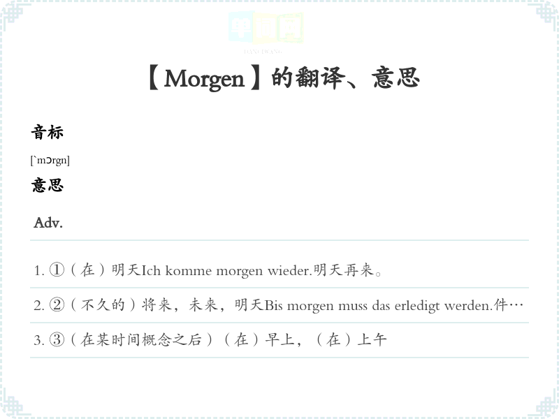 【Morgen】是什么意思、字义解释