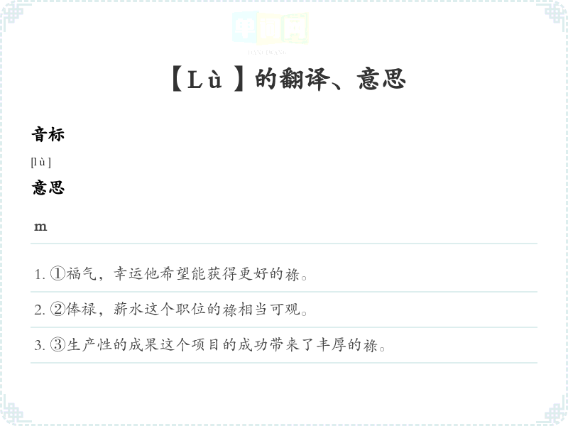 - 3. 这个项目的成功带来了丰厚的祿。