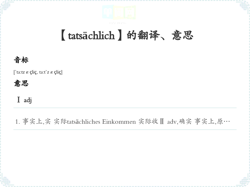 【tatsächlich】是什么意思、字义解释