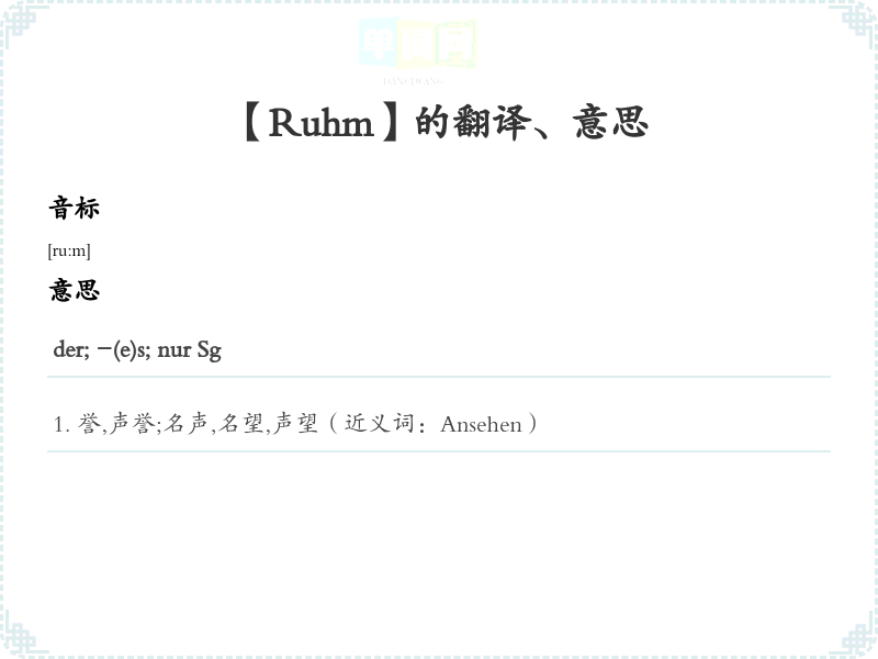 【Ruhm】是什么意思、字义解释