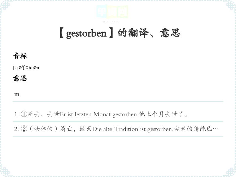 【gestorben】是什么意思、字义解释