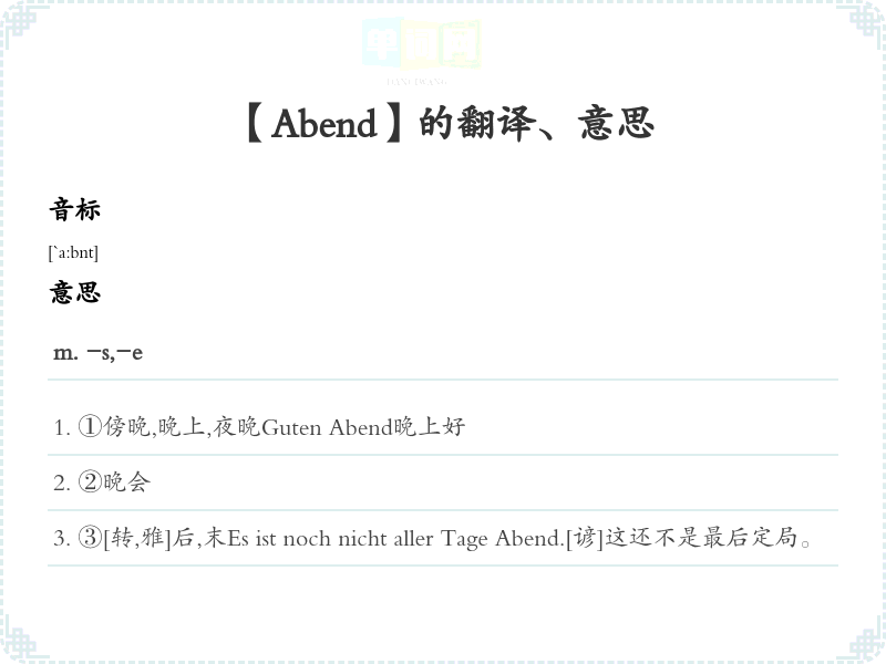 【Abend】是什么意思、字义解释