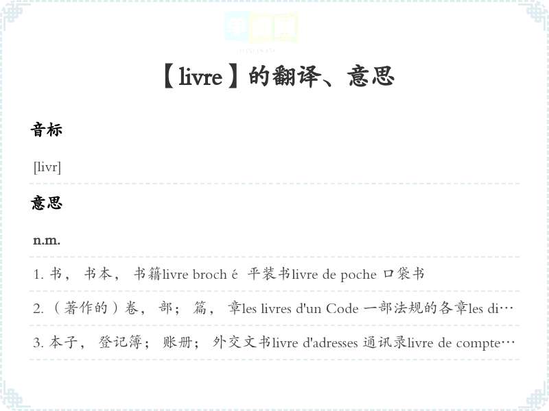 【livre】是什么意思、字义解释