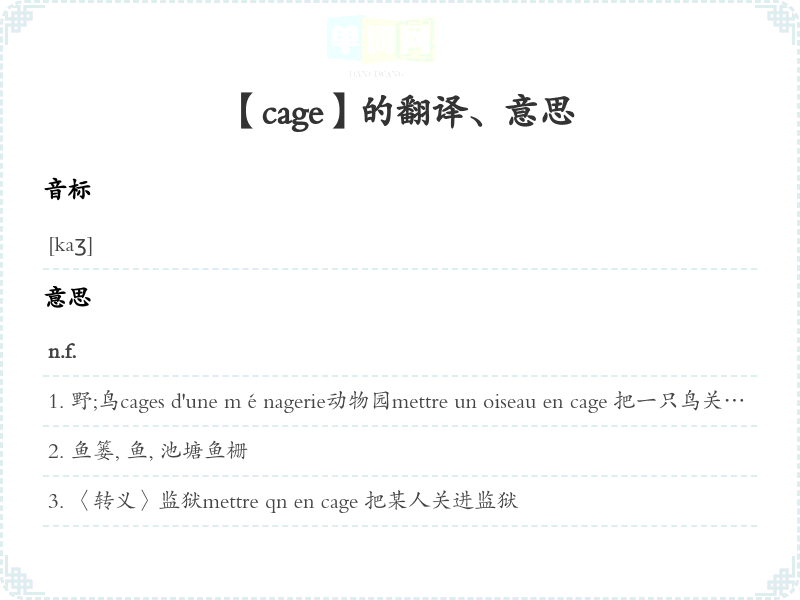 【cage】是什么意思、字义解释
