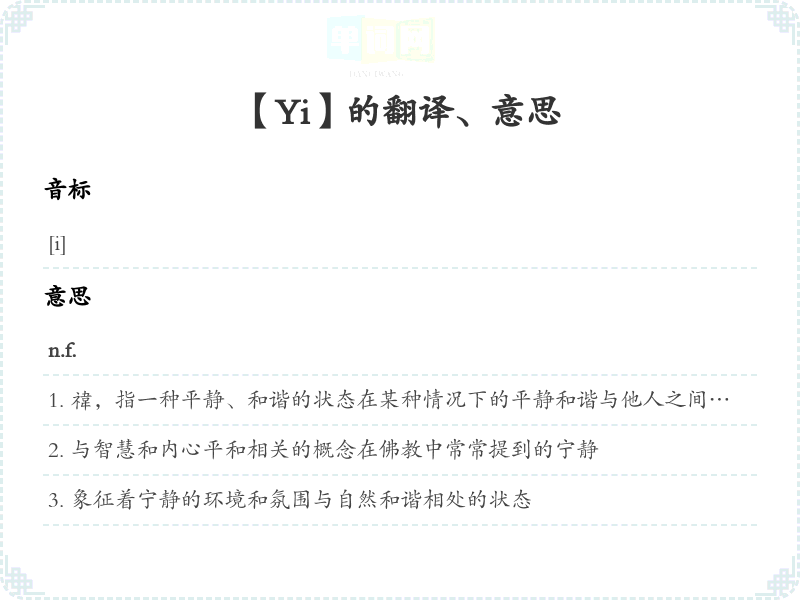 【Yi】是什么意思、字义解释