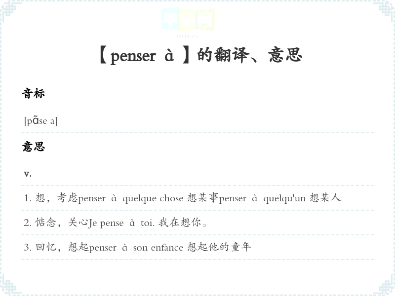 【penser à】是什么意思、字义解释