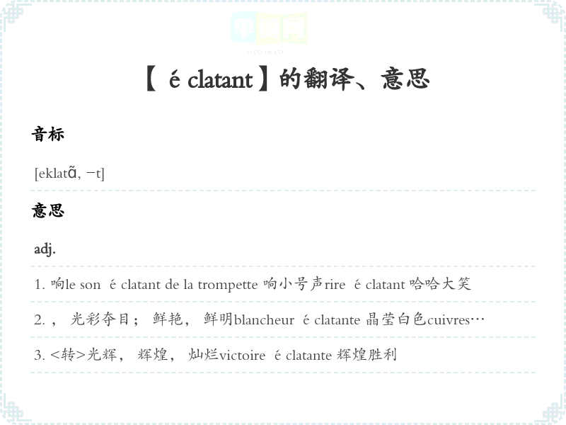 【éclatant】 联想:、 名词变化:、 近义词:、 反义词: 联想词