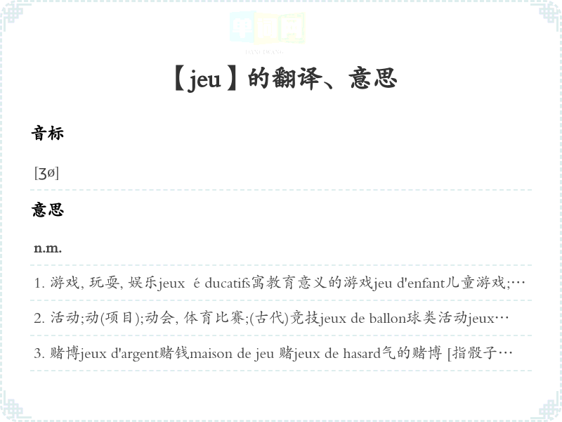 【jeu】是什么意思、字义解释