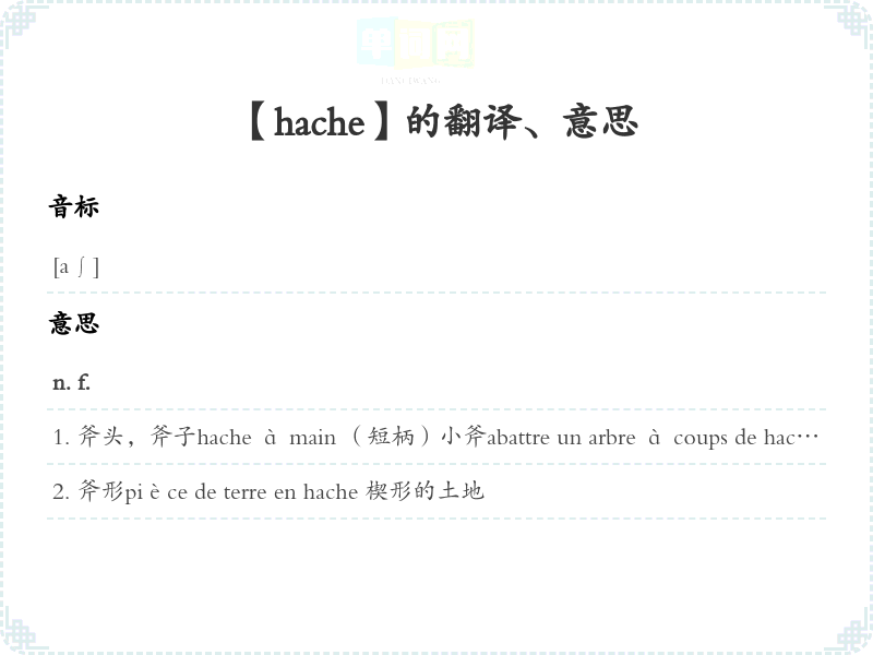 【hache】 联想、 近义词、 同音、近音词 联想词