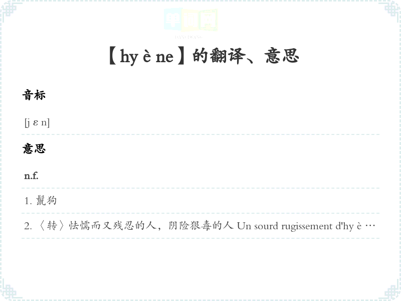 【hyène】是什么意思、字义解释