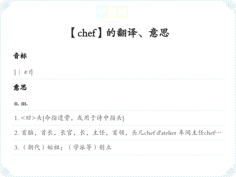 【chef】是什么意思、字义解释