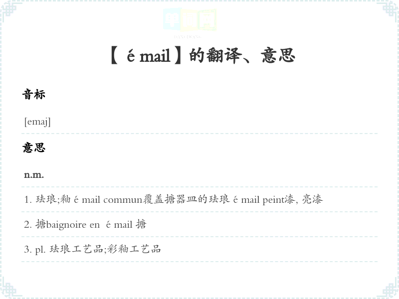 珐琅;釉émail commun覆盖搪器皿的珐琅émail peint漆, 亮漆