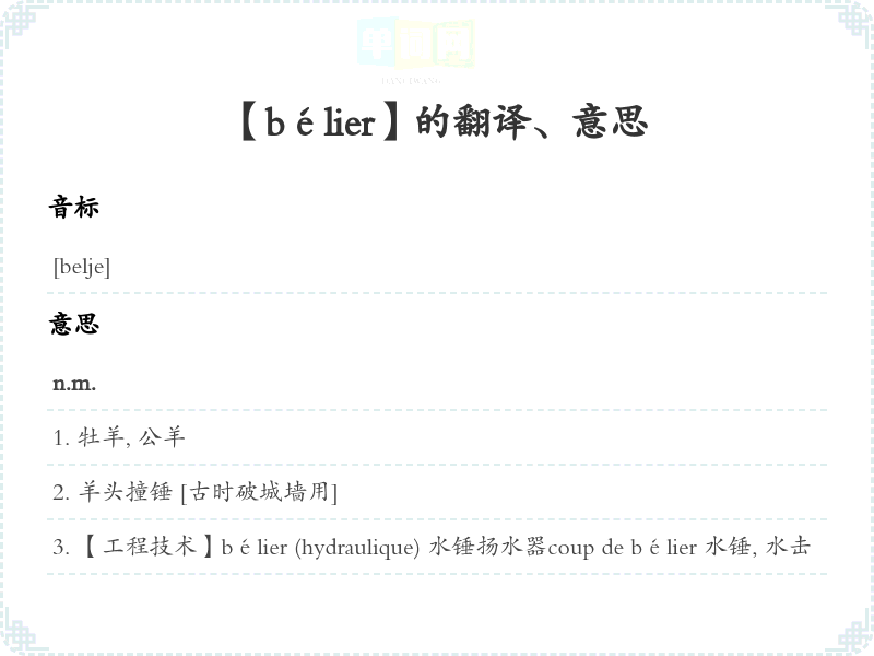 【bélier】是什么意思、字义解释